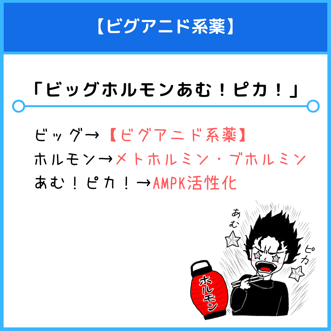 ビグアニド系薬は語尾の〇〇ホルミンに注目して覚えよう!